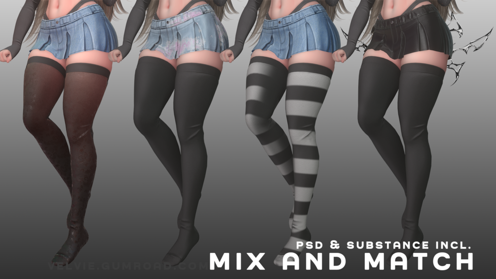-> Multiple colorways available (leather skirt, denim skirt, decorated denim skirt) (striped socks, fancy socks, plain socks)