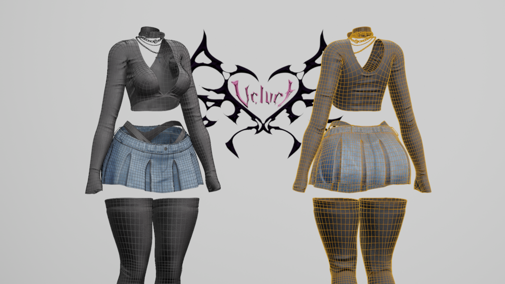 VRGIRL Outfit made from scratch by Velvet in Blender, ZBrush, and Substance Painter.